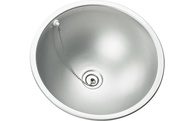 Das runde Dometic CE02 B325-I Handwaschbecken ist aus einfach zu reinigendem Edelstahl gefertigt und wird mit Wasserhähnen am äußeren Gehäuse montiert.