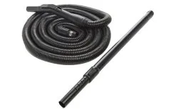 - Ein langer Schlauch (12 m) und zwei Anschlüsse sorgen dafür, dass kein Staub oder Schmutz außer Reichweite bleibt
