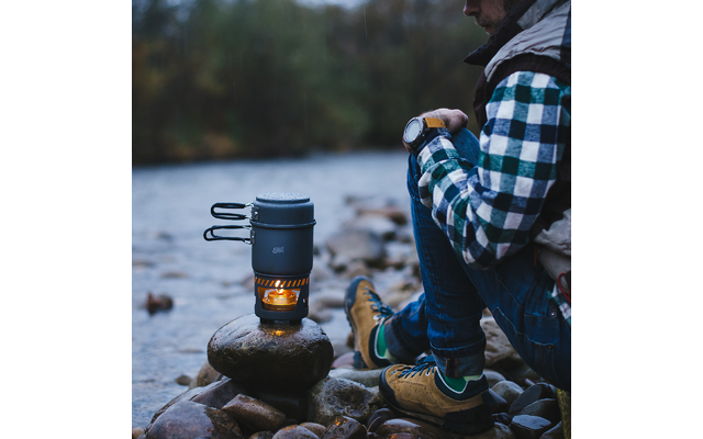 Dieses Set haben wir für diejenigen entwickelt, die mit einem kleinen, kompakten Spirituskochset auch einmal mehr als nur den kleinen Hunger stillen möchten – für die Gewicht und Packmaß jedoch trotzdem eine wichtige Rolle spielen. So lassen sich der Stand, die Auflage für unsere Trockenbrennstofftabletten und der Spiritusbrenner ganz einfach in dem großen Topf verstauen. Damit nach dem Kochen die Flamme einfach gelöscht werden kann, ist auch dieses Set mit unserem Flammenregulierer mit Klappgriff ausgestattet.