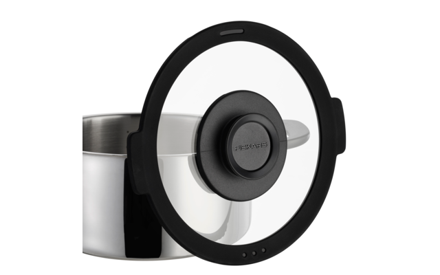 Der flache Deckel aus gehärtetem Glas ermöglicht ein sicheres Beobachten und verfügt über zwei Ausgießmöglichkeiten, Dampf- und Kochkontrollfunktionen sowie einen geräuschlosen Silikonrand. Das Functional Form Kochgeschirr ist stapelbar für eine einfache, platzsparende Aufbewahrung. Insgesamt ist Fiskars Functional Form eine vielseitige Kochserie für alle Küchen und Köche. Darüber hinaus ist es leicht zu reinigen, spülmaschinenfest und backofenfest bis 150 °C. In Finnland entworfen und gefertigt.