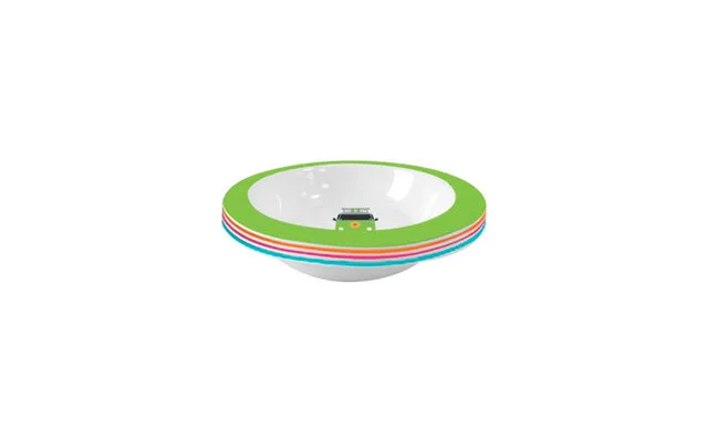 Suppenteller-Set für 4 Personen im tollen Camper Smiles Design. Das Set ist bruchunempfindlich, pflegeleicht, spülmaschinengeeignet, temperaturbeständig bis +70°C und leicht im Gewicht.