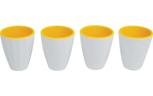 Je ein Eierbecher geriffelt, mit Waben, gepunktet und glatt.