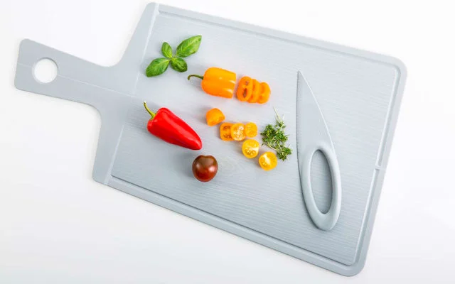 Erst schneiden, dann falten. Der Archetyp des Schneidbretts jetzt mit neuer Klappfunktion und durchdachtem Design. Das Schneidebrett lässt sich durch den mittigen Falz anwinkeln und das geschnittene Gut rutscht sicher in den Topf oder die Schüssel. Dank seiner professionellen Größe lassen sich bei der Speisenzubereitung alle Zutaten bequem auf einer Fläche zerkleinern und sammeln. Auch Braten oder Backwaren werden hier komfortabel portioniert. Mit dem großem Griff zum besseren Anheben und Halten, der rundum laufenden Saftrille und seiner klingenschonender Oberfläche ist SNAP 2.0 einfach gut durchdacht. Das Schneidebrett wird aus dem neuen koziol Organic Material mit natürlicher Zellulose hergestellt: umweltfreundlich, lebensmittelecht, 100% recycelbar, absolut schadstofffrei, ohne Formaldehyd oder BPA. Dazu ist es extrem langlebig, robust und natürlich spülmaschinenfest. Die Herstellung in Deutschland ermöglicht zudem eine aktive Reduktion von CO² durch kurze Transportwege und den Einsatz von Ökostrom.