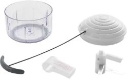 Die Revolution in der Küche! Gemüse- und Obstzerkleinerer mit leichtgängigem Zugmechanismus. Auch zum Mixen und Rühren von Soßen und Dips geeignet. So einfach war Zerkleinern noch nie.