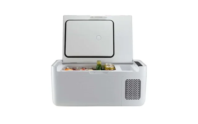 Die Mobicool MCG15 hat ein Fassungsvermögen von 15 l. Die Kühlbox überzeugt mit ihrem frischen, modernen Design. Dank der leistungsstarken Kompressorkühltechnologie erreicht die Kühlbox ihre Zieltemperatur in kürzester Zeit. Stellen Sie die Temperatur über die einfache Bedienoberfläche und den digitalen Temperaturmonitor ganz bequem zwischen +20 °C und -18 °C ein. Der Deckel der Kühlbox ist als Tischplatte nutzbar, sodass Sie eine zusätzlich nutzbare Fläche haben. Die Ränder sind leicht erhöht, damit nichts herunterfällt. Der Deckel hat einen Öffnungswinkel von 105°, wodurch ein Umkippen der Kühlbox verhindert wird. In der Kühlbox befindet sich ein integrierter Besteckkasten, der alternativ auch als Behälter für Snacks genutzt werden kann.