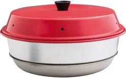 - Der rote Deckel hat kleine Ventilationslöcher und eine ausreichende Höhe, damit Kuchen und Brot ordentlich aufgehen können.