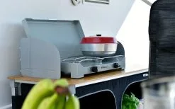 Perfekt für das Boot, das Wohnmobil, den Wohnwagen, das Zelt, im Schrebergarten oder sonstige Plätze, wo ein Backofen fehlt.