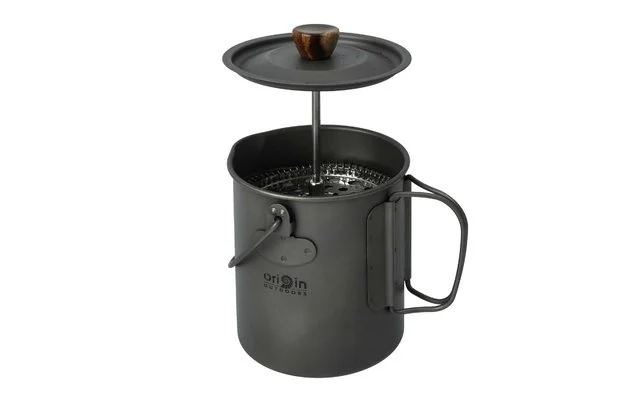 Extra leichte Titan French Press, Topf oder Tasse. Der Kaffeefiltereinsatz aus hochwertigem Edelstahl ist einfach zu reinigen und kann nach Belieben entnommen werden. Ausgestattet mit Ausgießer, Klappgriffen, Inhaltsanzeige in ml und einer Einkerbung im Hängegriff zum Aufhängen über ein Lagerfeuer. Die 3 in 1 French Press ist der perfekte Begleiter zum Reisen, Wandern und Trekking. Leicht zu reinigen und spülmaschinenfest.