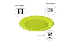 Der flache Teller Caruba besteht aus robustem, umweltfreundlich erzeugtem Kunststoff, der selbstverständlich lebensmittelecht und frei von Schadstoffen wie Bisphenol-A ist. Das pflegeleichte Material lässt sich problemlos in der Spülmaschine reinigen, ohne sich dabei zu verformen oder zerkratzt zu werden. Dank seiner strukturierten Oberfläche liegt der Teller darüber hinaus gut in der Hand. Die schlicht-elegante Formgebung sowie das attraktive Preis-Leistungs-Verhältnis machen den Teller Caruba zum unverzichtbaren Alltagshelfer in jeder Küche.
