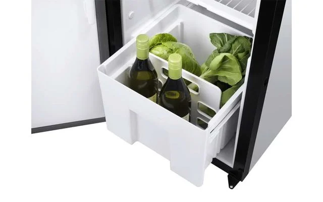 Der Kühlschrank ist nur 418 mm breit – gegenüber dem Standard von 525 mm – bietet mit über 140 l aber dennoch ein großes Volumen einschließlich eines 15 l-Gefrierfachs und eines integrierten Getränkefachs.