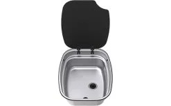 Die Argent-Serie bietet eine Spüle aus Edelstahl oder emailliertem Stahl mit Glasdeckel an. Ideal zum upgrade Ihrer Camping Küche.