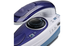 Praktisches Reise-Dampfbügeleisen dank der kompakten Größe, des klappbaren Griffs und des Dualspannungssystems.