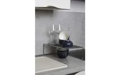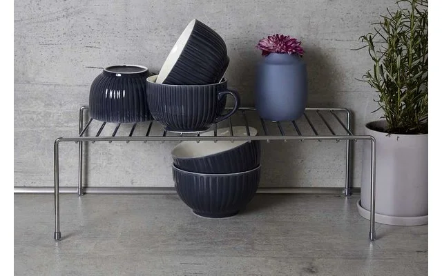 Die praktische Geschirrablage fügt sich platzsparend auf jeder Arbeitsplatte ein. Das Regal aus glänzendem Chrom bietet viel Stauraum für Geschirr und Kochutensilien oder kleinere Küchengeräte. Auch Lebensmittel können griffbereit auf dem praktischen Regal verstaut werden. Das macht dieses Geschirr-Regal zu einem nützlichen Helfer in jedem Haushalt. An den vier Füßen ist die Ablage mit Schutzkappen ausgestattet, um ein Verkratzen auf der Abstellfläche zu vermeiden.