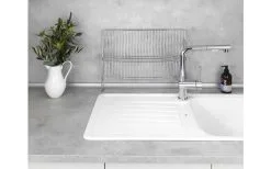 Der praktische Geschirrabtropfer Duo aus verchromtem Metall bietet mit seinen großen Ablageflächen viel Platz für Teller und Geschirr. Da es auch im Zeitalter der Spülmaschine immer noch Geschirr und Besteck gibt, das besser von Hand gespült werden sollte, dient er als funktionelles Zubehör für die Spüle in Küche, Gartenhaus oder Wohnmobil. Durch die kreuzförmige Konstruktion finden Teller auf der oberen Ablagefläche optimalen Halt. Die seitliche Ablage bietet Platz für Tassen, kleinere Gläser oder Besteck. Bei Nichtgebrauch kann der Geschirrabtropfer platzsparend zusammengeklappt werden.