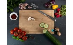 Besonders geeignet ist das Küchenbrett als Tranchier- und Schneidbrett für Fisch, Fleisch oder Obst und Gemüse. Sehr praktisch: die integrierte, umlaufende Saftrille – ideal für Steak, Braten und saftige Gerichte.